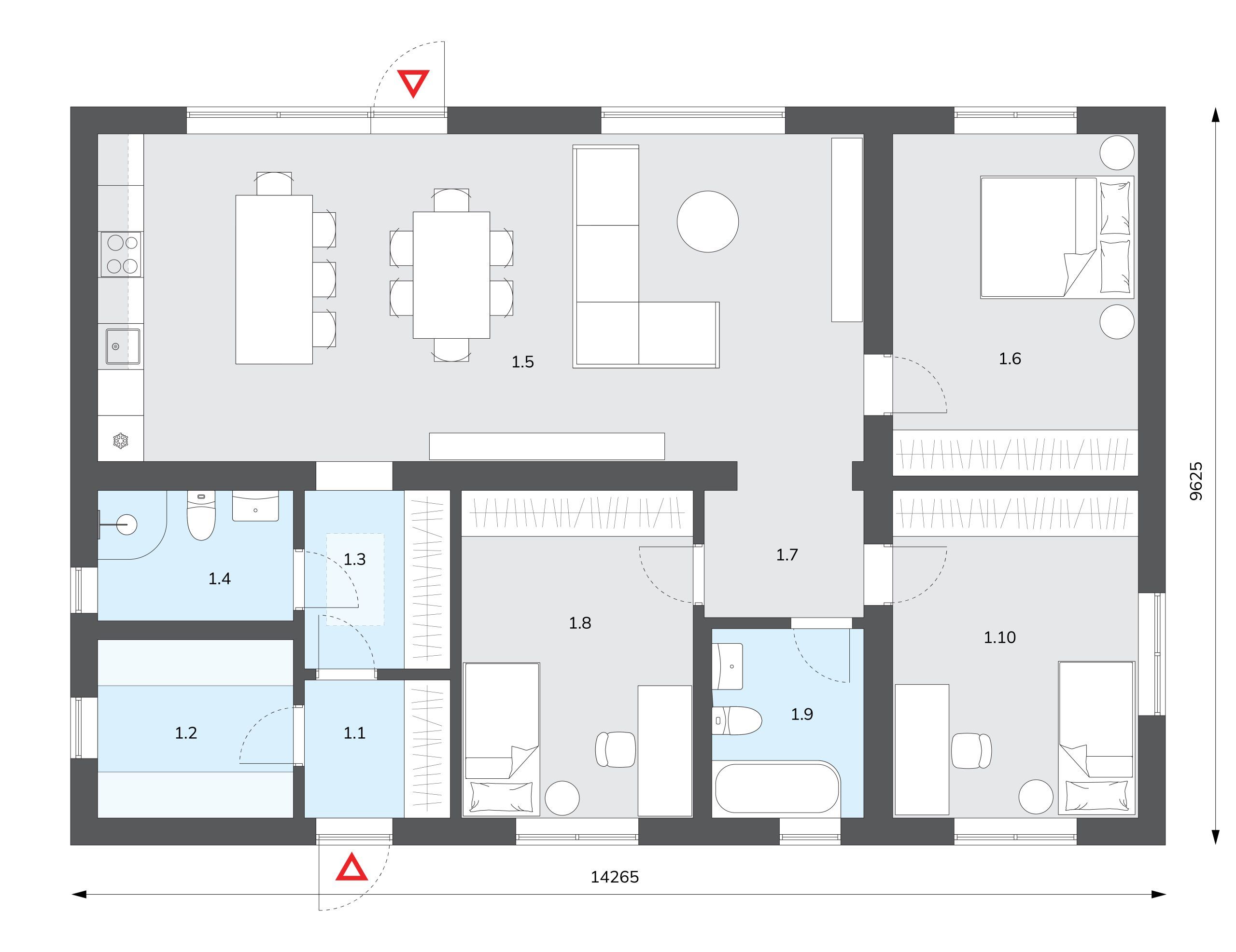 • Virtuves iekārtu ar tehniku – virtuves zona ir sagatavota iekārtošanai, bet mēbeles un sadzīves tehnika nav iekļauta pamatkomplektācijā.