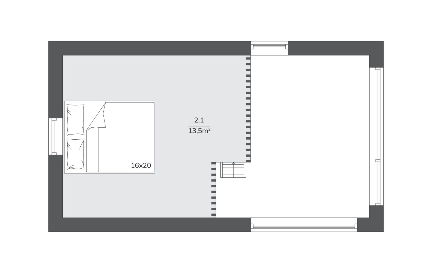 Pieejama arī bēniņu zona, uz kuru ved pieslienamas kāpnes. Šo papildtelpu iespējams izmantot kā guļamvietu, lasītavu vai uzglabāšanas vietu. Tā īpaši patīk bērniem – kā noslēpumaina un aizraujoša vieta spēlēm vai atpūtai.