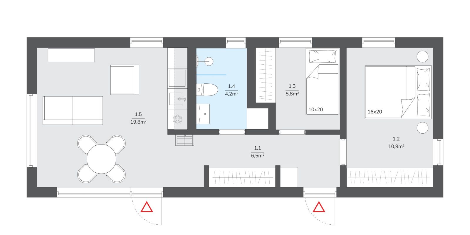 Mājā ir divas slēgtas guļamistabas, kas nodrošina privātumu un mierpilnu vidi ikvienam ģimenes loceklim.